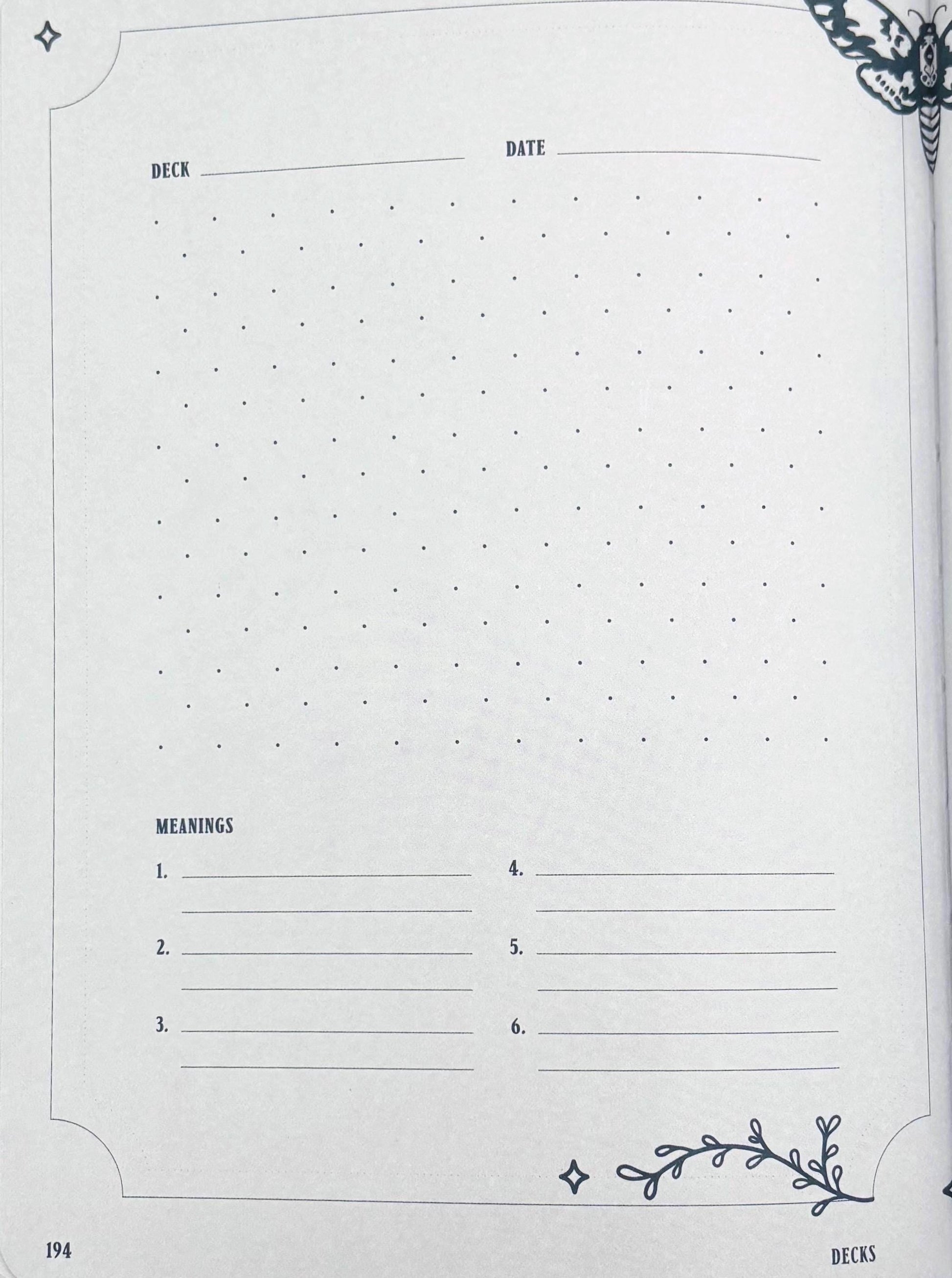 • Studying the cards • Recording readings • Collecting and creating your own tarot spreads • Tarot deck and books inventories and wish lists • Compiling all your online resources • Contact directory for your tarot circle
