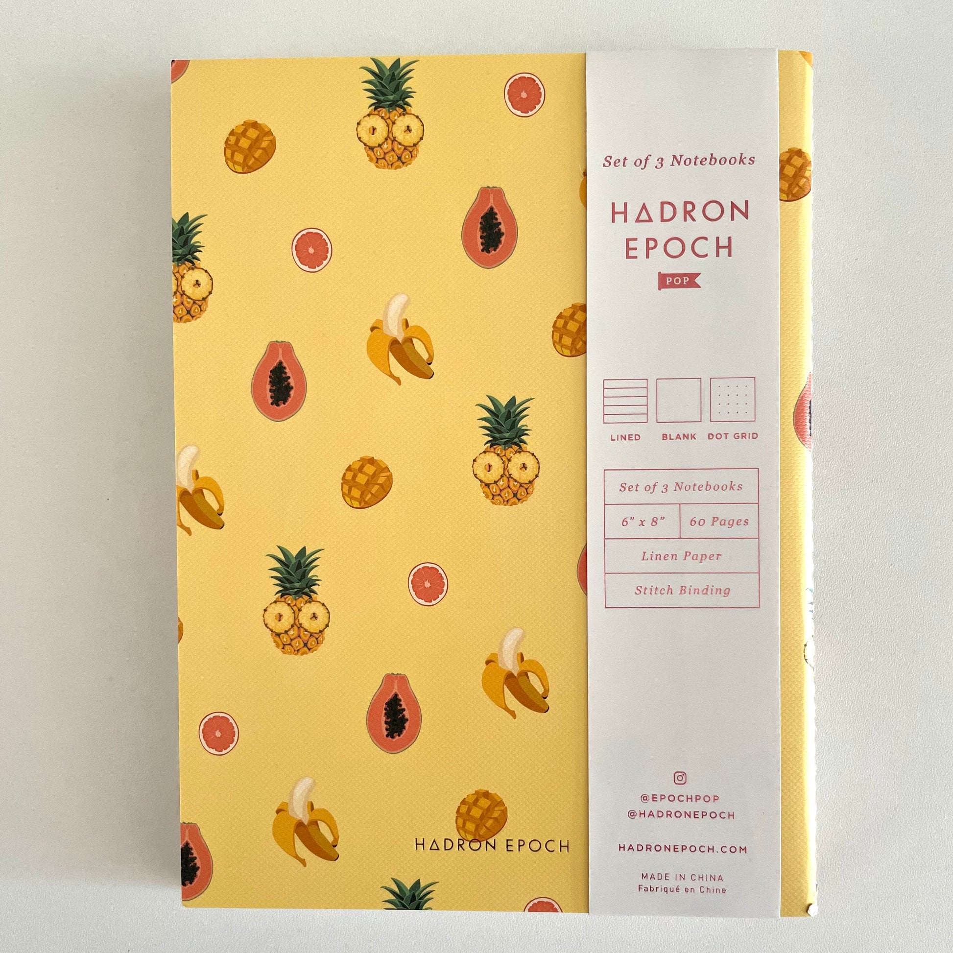 This 3pc premium journal set features a cheeky tropical fruit pattern including banana, pineapple and guava. Perfect as daily journals, habit trackers, recipe books, or as a gift for a friend.