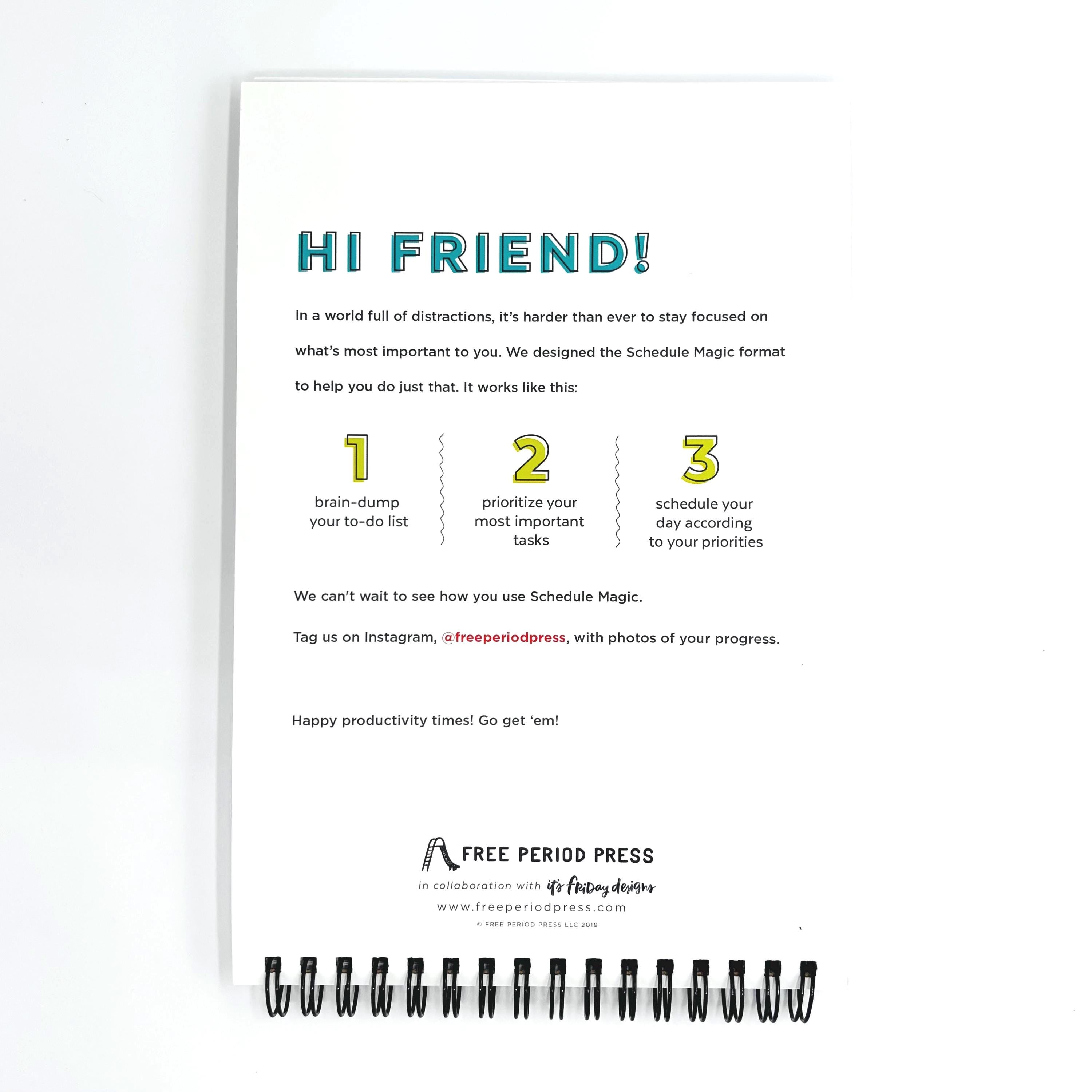Schedule Magic Daily Planner - Spiral Notebook To-Do List for Home Work Office or School